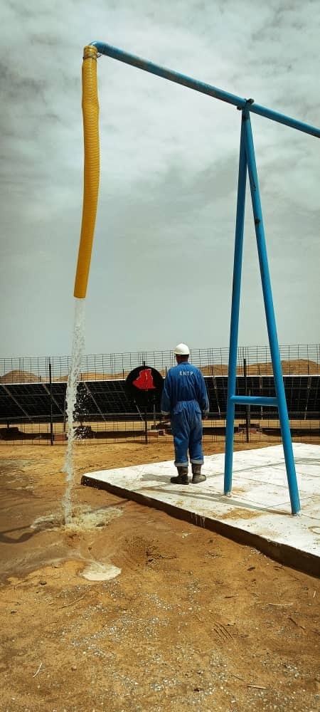 • إعادة تجهيز البئر بتركيب مضخة جديدة عالية الجودة وتشغيلها بالطاقة النظيفة (ألواح شمسية) لضمان استمرارية واستقرار التدفق،
